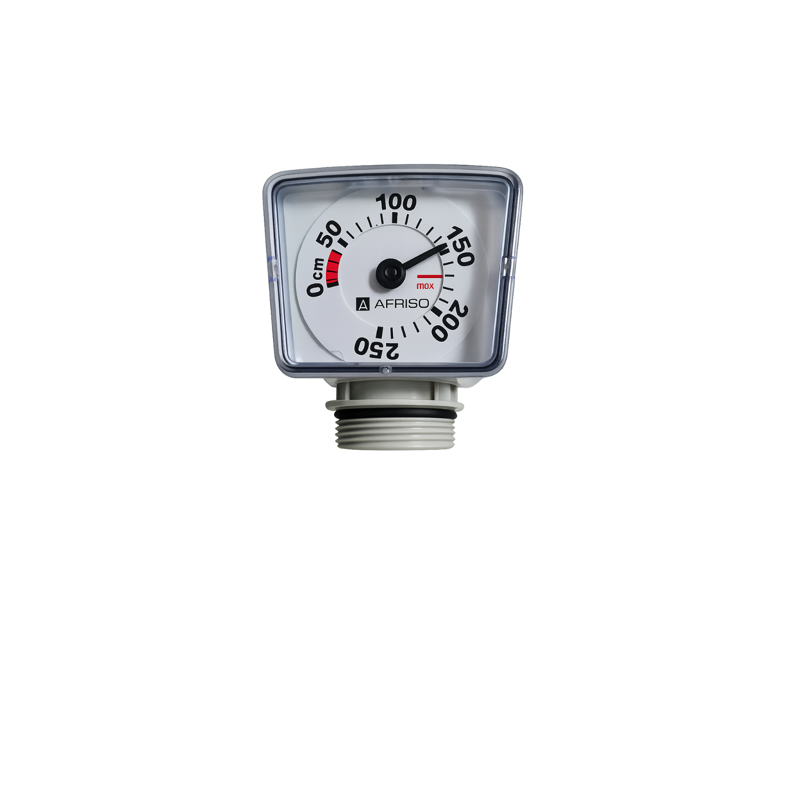 Indicator mecanic de nivel combustibil, universal, cu transmisie planetara din material plastic. Interval de masurare ajustabil de la 0 la 250 cm, prin intoarcerea cadranului. Cadran reversibil de la 0-150 cm si 0-250 cm pentru adaptarea rapida la inaltimea bazinului.